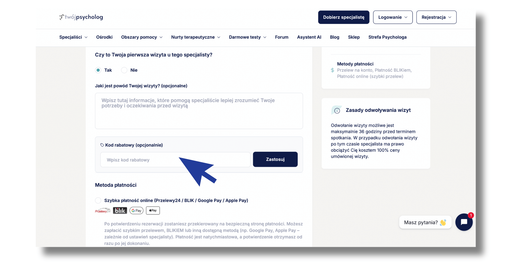 Na etapie podsumowania wpisuje kod kuponu w polu „Kod rabatowy" i zatwierdza :)