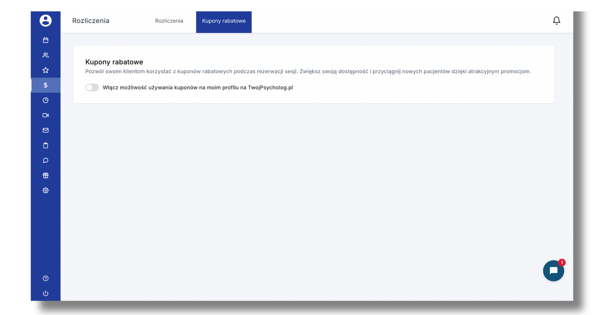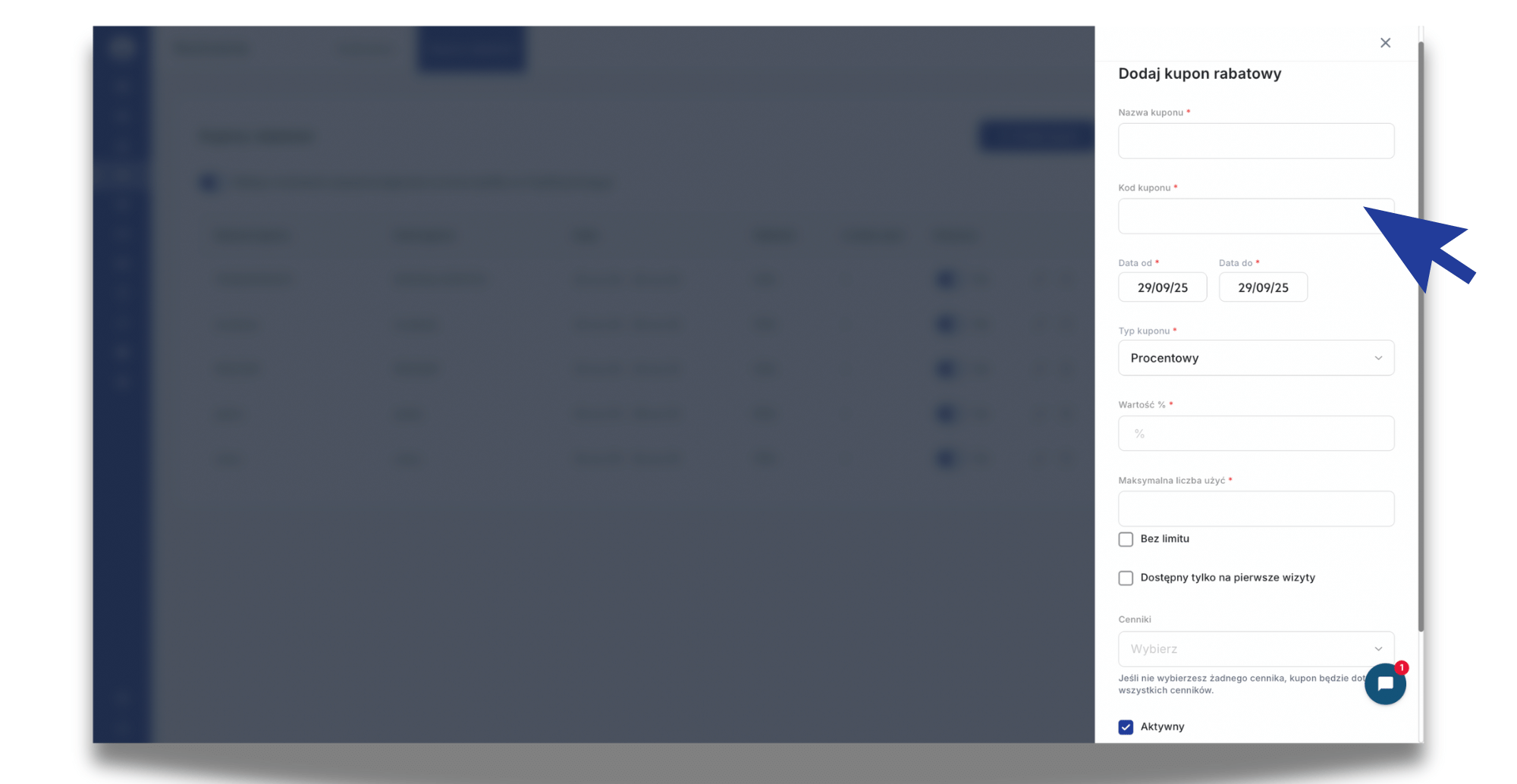 Kupony rabatowe to prosty sposób na zachęcenie nowych osób do umówienia pierwszej wizyty czy nagrodzenie stałych Klientów_ek. Możesz tworzyć zarówno kupony procentowe (np. -10%), jak i kwotowe (np. -30 zł), określać ich ważność czasową oraz wybierać, których usług mają dotyczyć.