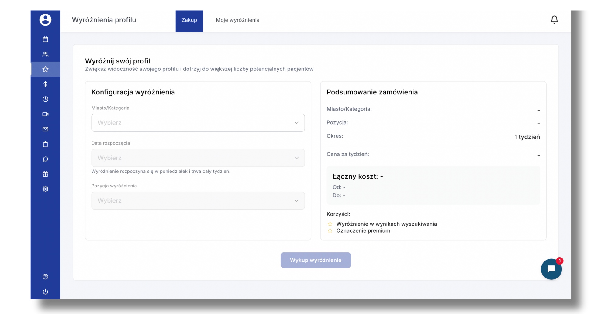 Rozwój praktyki - wyróżnienie to narzędzie, które może pomóc w systematycznym budowaniu bazy Klientów_ek. Koszt tygodniowego wyróżnienia jest stosunkowo niewielki w porównaniu z potencjalnymi efektami w postaci nowych kontaktów.