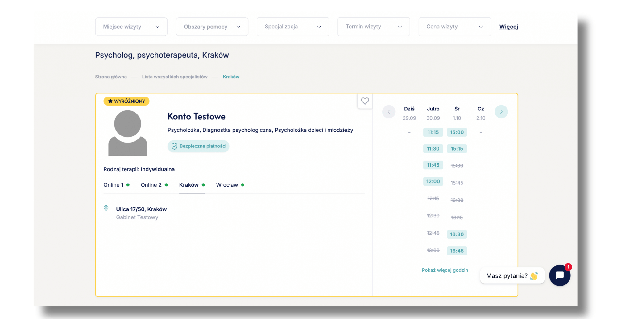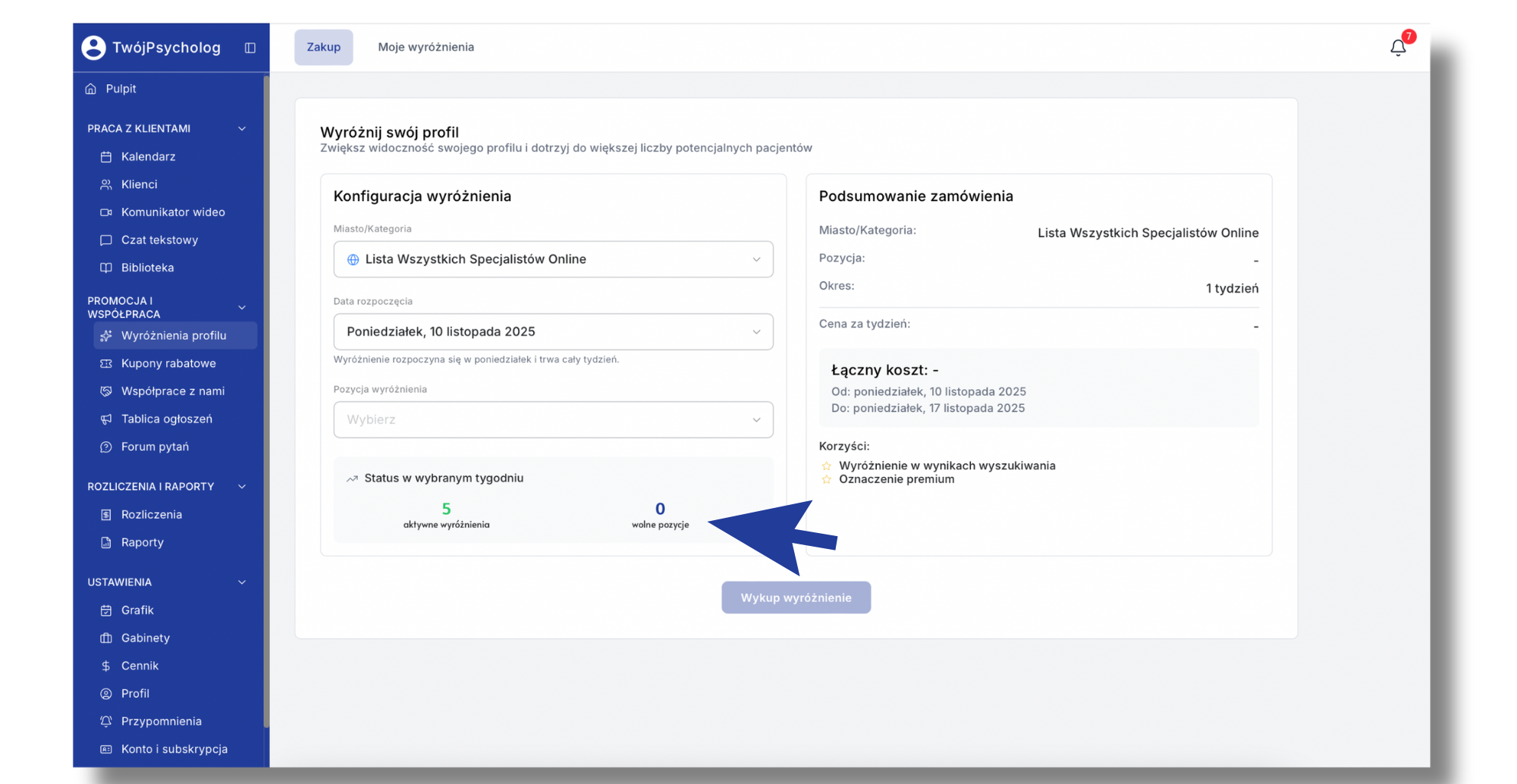 Poniższa instrukcja przeprowadzi Cię przez proces wykupienia wyróżnienia krok po kroku. Jeśli masz dodatkowe pytania – napisz do nas na kontakt@twojpsycholog.pl